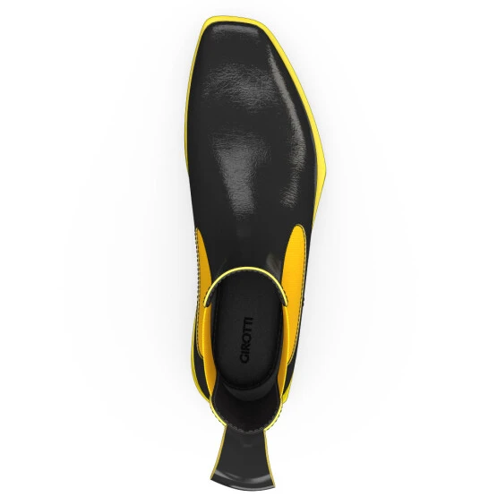Cuir verni ridé avec bords colorés – Noir + Jaune